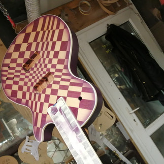1/2" top hand carved from approx 150 individual pieces of purpple heart & beech